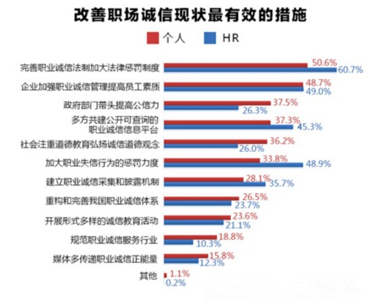 近日,《中国职场诚信现状与影响调查报告》正式发布,高达90%的企业和个人都认为中国职场诚信度不佳,近七成的个人都曾因他人职业失信受损,特别是简历注水、面试失约、恶意跳槽、企业虚假招聘、不按实际缴纳社保/公积金等长期存在的“职场诚信痛点”被高度关注,公众呼吁完善职场诚信管理机制。 调查结果显示,职场人士的年龄、学历、职位、收入越低,失信概率越高。销售、市场、技术研发是排名前三的最易失信人群。招聘是职场失信的重灾区,无论企业还是个人,都认为对方在招聘、求职时失信现象最普遍,其中面试承诺不兑现、发布虚假招聘信息,夸大个人工作技能、面试失约等都是排名靠前的失信现象;此外,企业不按实际缴纳社保/公积金、欠薪,员工恶意劳动仲裁等也是个人和企业吐糟较多的失信现象。 调查数据中,受访者诚信意识和行动之间落差较大,93.8%的职场人士认为诚信很重要,但最终坚守者不足三成。可以看出,当前职场诚信体系不健全的大环境下,仅靠大家自律、道德约束,效果非常有限。失信成本太低、个人和企业利益驱使在调查中被推选为职场失信的最重要原因。 对此,HR专家指出,尽快完善职场诚信管理机制,建立个人职场诚信档案,以制约职场失信的频发。同时,公众也期待积极建设“主动干预”措施,加强企业职业诚信管理,共建公开可查询的职业诚信信息平台。 然而,调查中近半企业没有职场诚信管理,有也大多在招聘阶段介入采用,且调查方式缺乏专业、先进的技术支持。HR专家指出,当前企业的诚信管理机制建设与优化亟待完善,但职场诚信管理机制的建立是一个庞大的系统工程,需要对各种问题统筹和协调。如果引用第三方权威机构提供职场信用监督、管理及和先进的技术支持,可以快速搭建完善的人才信用体系,让失信者无处遁形。 “大数据征信技术可以做到低成本、高效率提供客观真实的个人和企业的诚信情况,发挥‘守信激励,失信惩戒’的作用。作为国内首个开创职场诚信档案公共服务的网络平台——全国个人职场诚信公共服务平台正式开启,旨在全面了解中国职场的诚信现状,剖析职场失信对企业和个人的影响与伤害,唤起社会关注职场失信的危害,通过大数据征信技术,为企业提供人才优选征信服务,为建立职场诚信体系提供参考依据,共建诚信社会。 业内人士分析,职场诚信是社会信用体系建设中的一个重要组成部分。随着个人征信市场的放开,个人信用领域正在向更细分、更纵深的领域扩张。大数据征信技术可以消除职场信息不透明、打破信息孤岛,预防职场失信、欺诈风险。以全国个人职场诚信公共服务平台为代表的大数据职场征信平台有望成为打破职场诚信痛点的突破口。 |